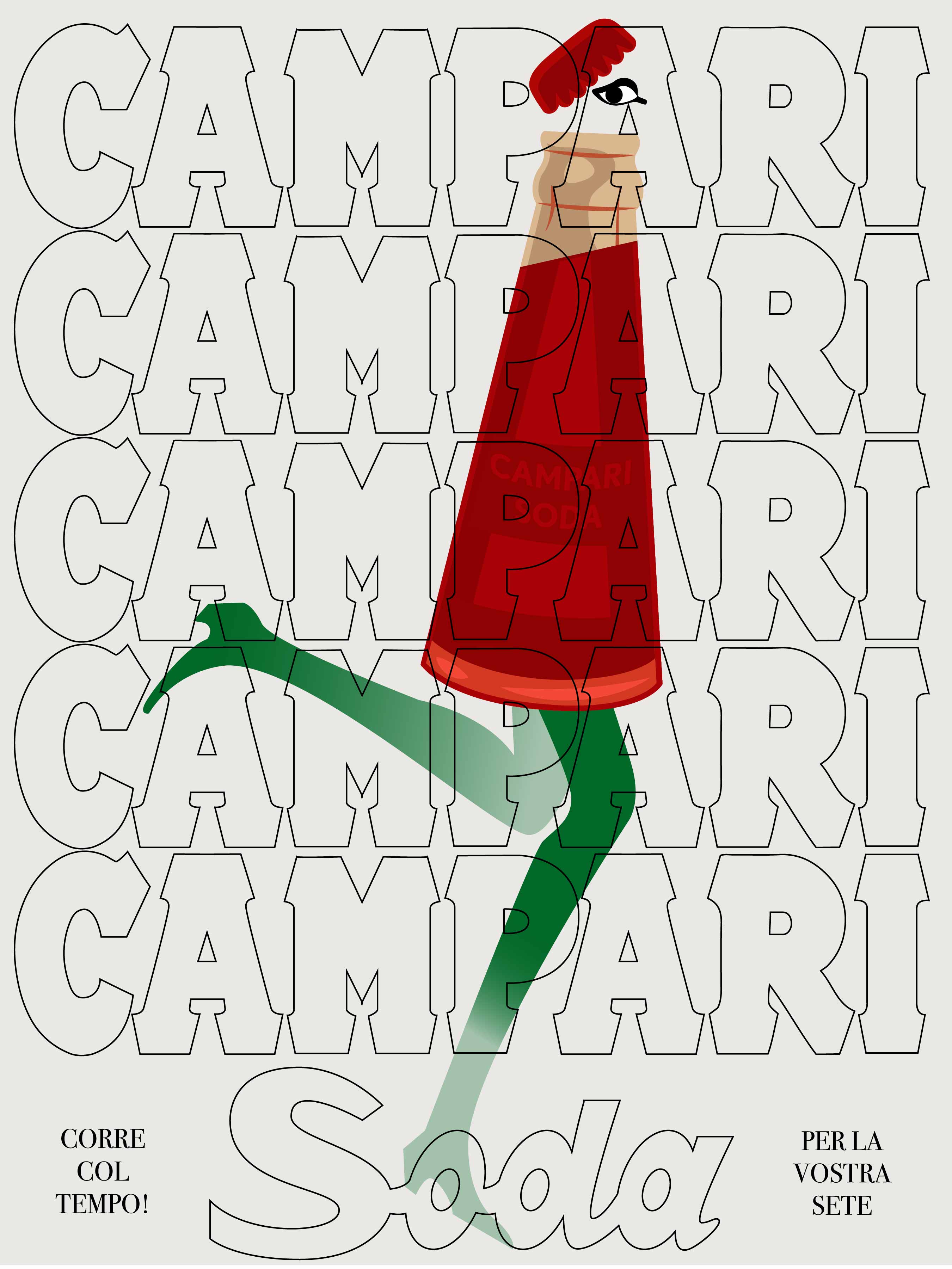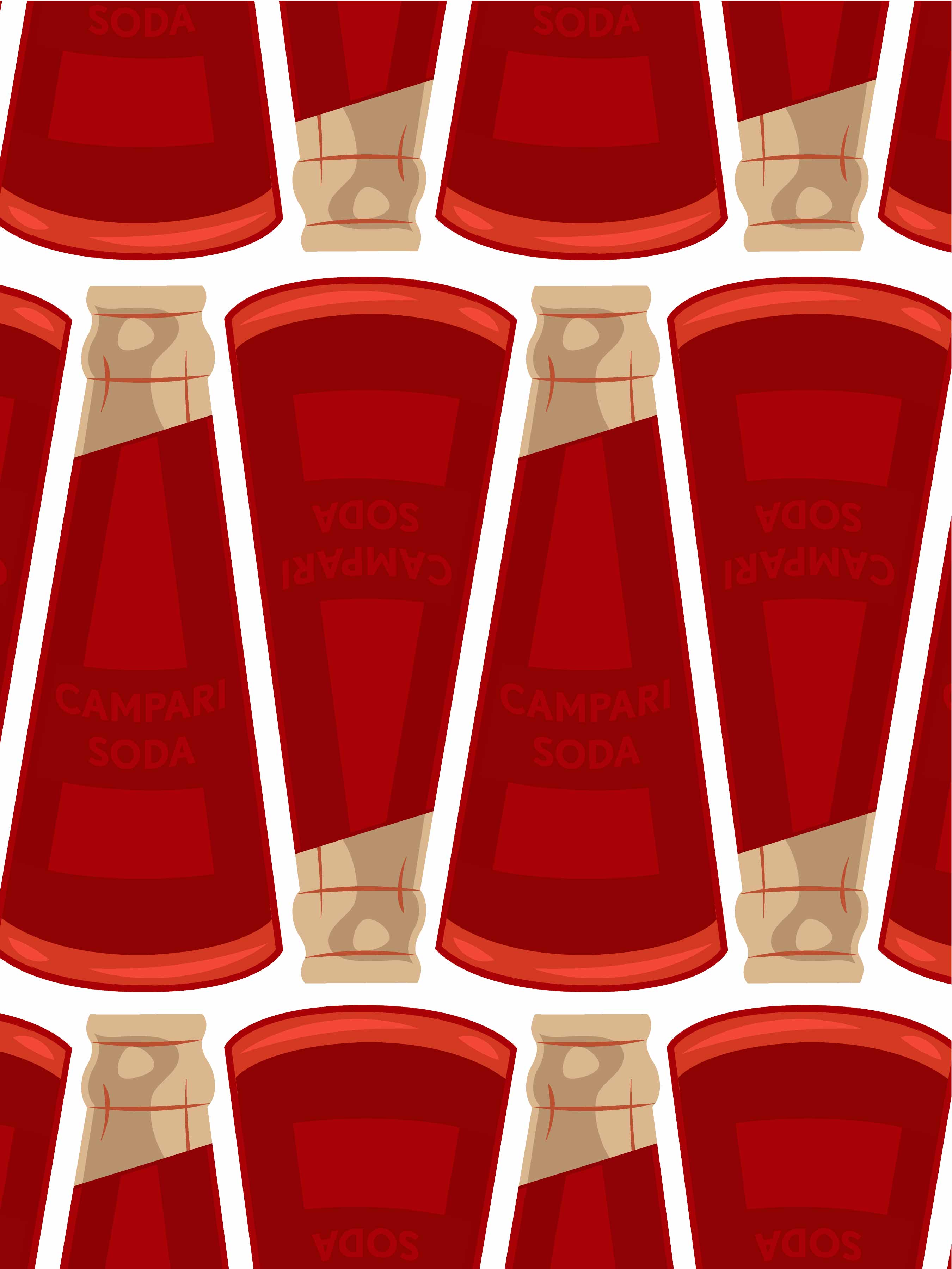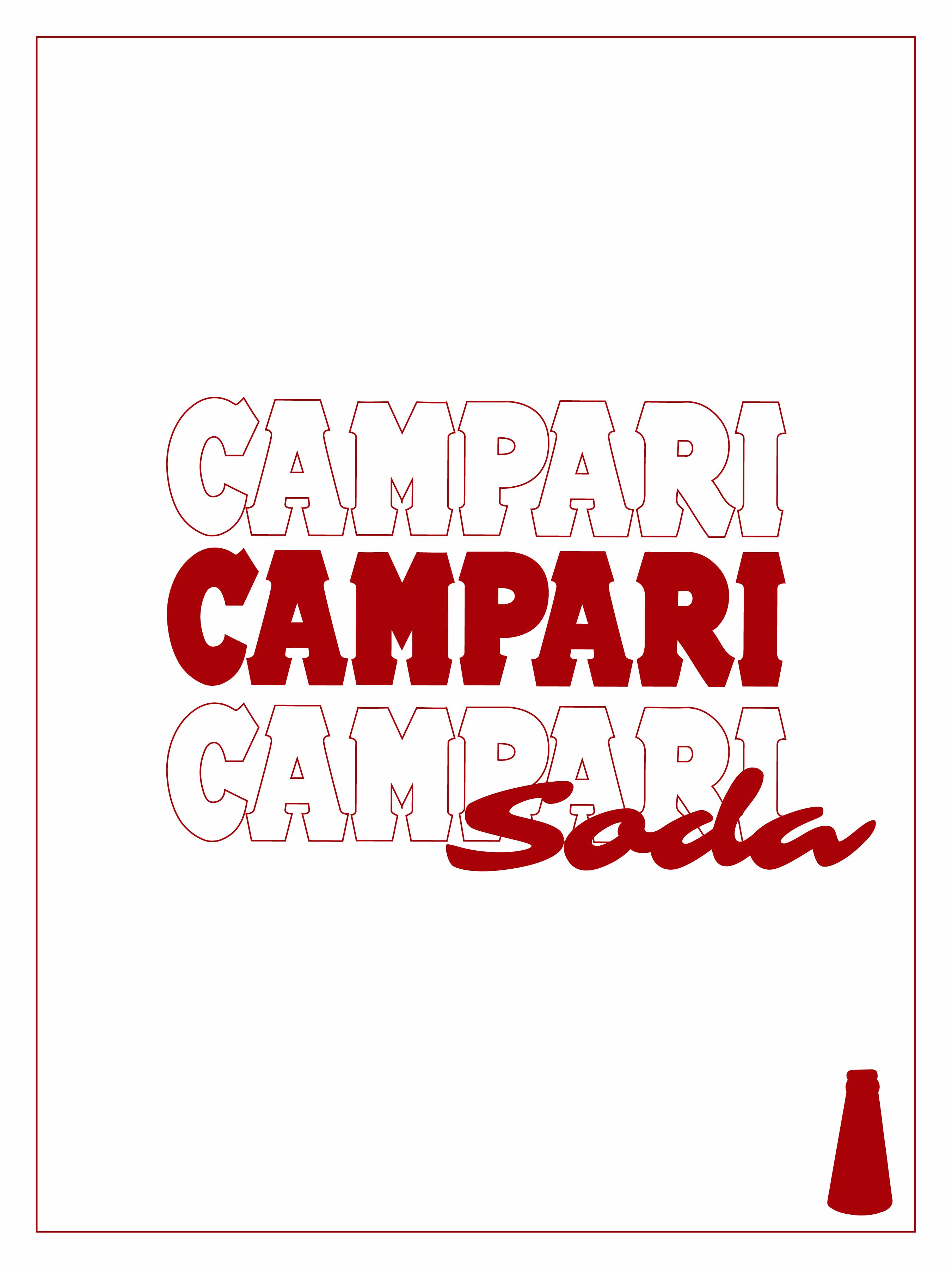 My designs are based on a poster created by Franz Marangolo for Campari in the 1960s. Ever since studying abroad in Milan, I’ve been in love with everything Italian, so when given the chance I naturally gravitated towards a staple of Italian aperitivo culture and a prime example of corporate branding, Campari.